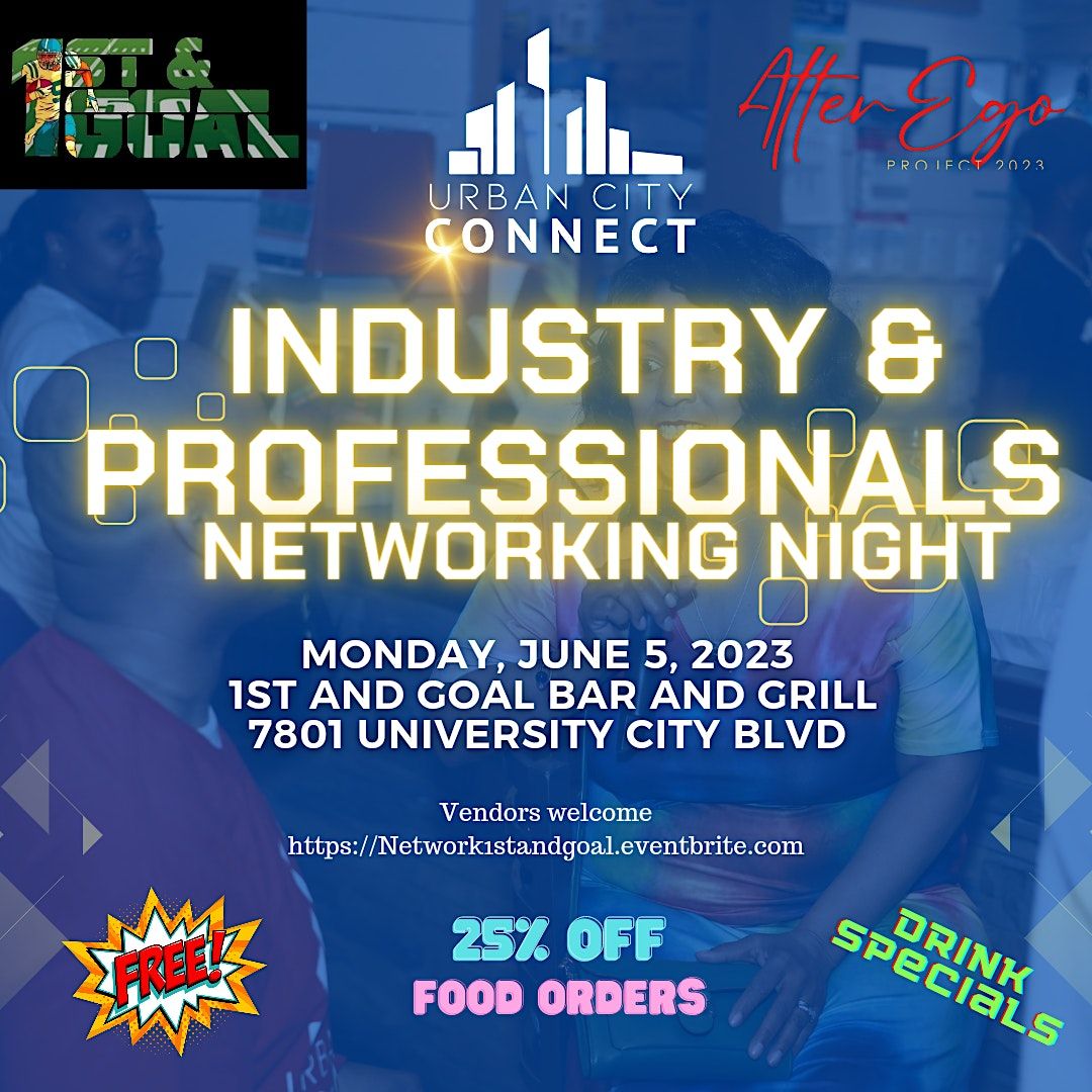 Come out and network with us in partnership with 1st and Goal's industry night and the Alter Ego Project Women Business Owners and Professionals! Urban City it's getting warm out! come out for our 1st event in a couple months! Food Specials ALL NIGHT! And 1st and Goal has some of the best food in the University area See you there!