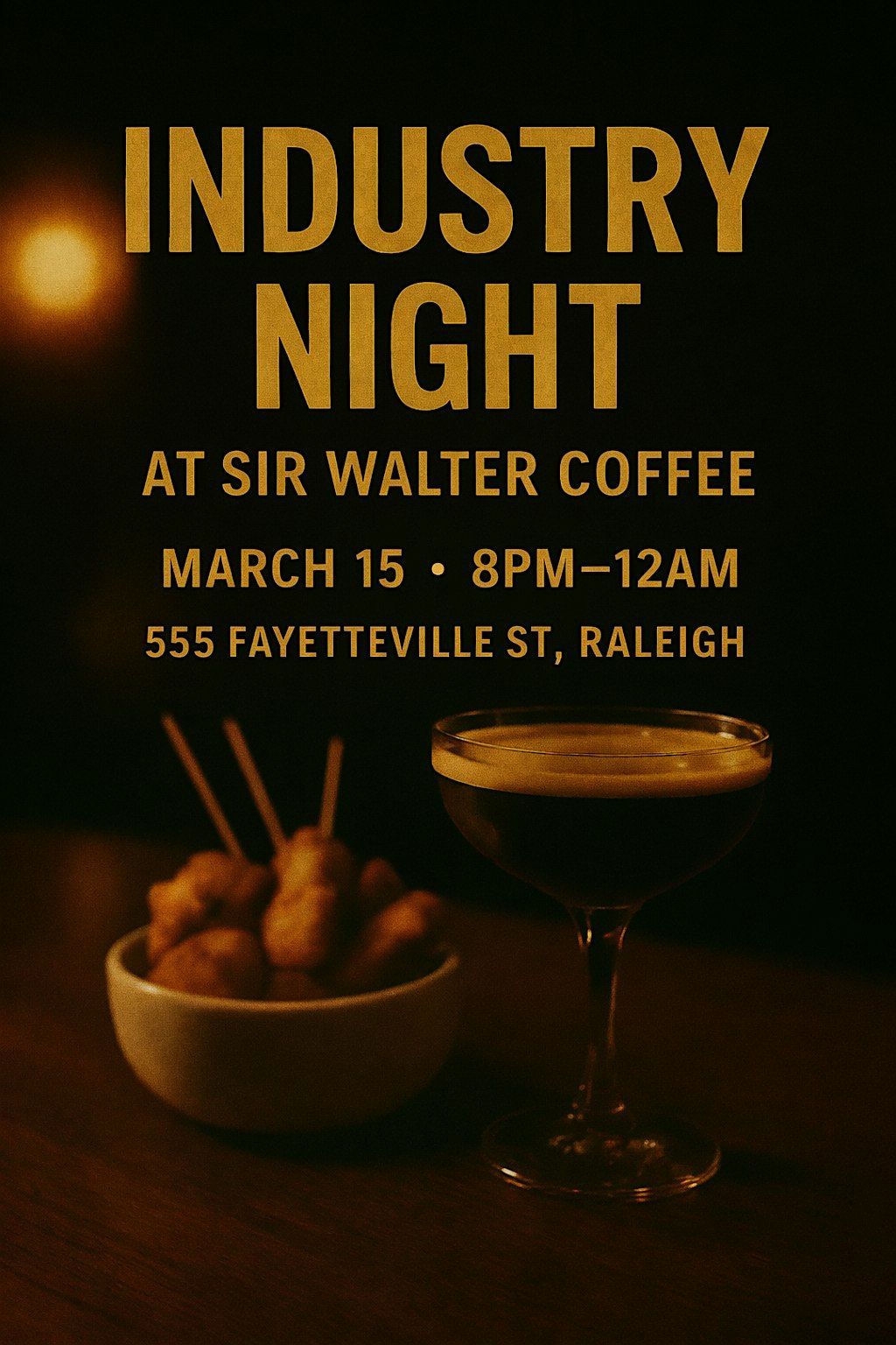 Industry Night at Sir Walter Coffee is back — a late-night hang for Raleigh’s hospitality crew and industry friends. Join us March 15th from 8PM–12AM for craft cocktails, good vibes, and a well-earned night off behind the bar. Whether you’re in service, behind the scenes, or just industry-adjacent, this one’s for you. 🍸