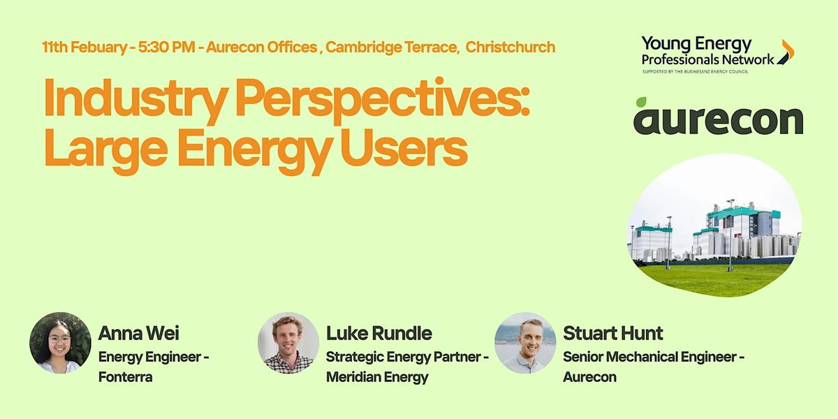Welcome to Industry Perspectives: Large Energy Users happening at Aurecon – Christchurch on February 11, 2026 at 5:30 PM.