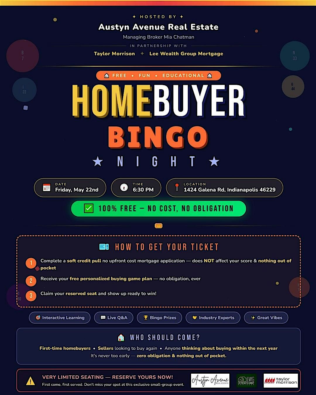 Ready for a fun night out with a purpose? Join us in person for Indy’s first-ever HomeBuyer Bingo Night where real estate meets good vibes, prizes, and real education you can actually use.