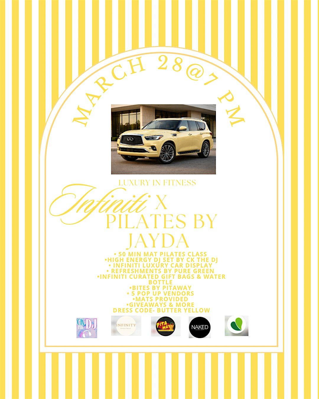 Pilates by Jayda will host an exclusive luxury wellness experience in partnership with INFINITI, bringing together movement, community, and elevated lifestyle. Guests will enjoy an energizing Pilates class set inside the INFINITI showroom, surrounded by the brand’s signature luxury vehicles.