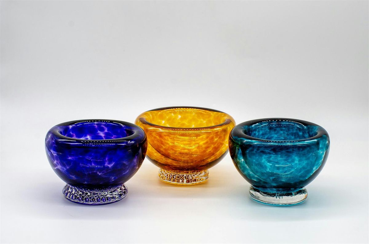 Have you ever wondered what would happen if you sucked in instead of blowing air into glass? Come and find out by making your very own Infinity Bowl. Students will be guided through making an Infinity Bowl by blowing a glass globe then inverting the top half of the glass by sucking in through the blowpipe. Beautifully simple bowls perfect for jewelry, spices, coins, floating candles and a variety of other uses.