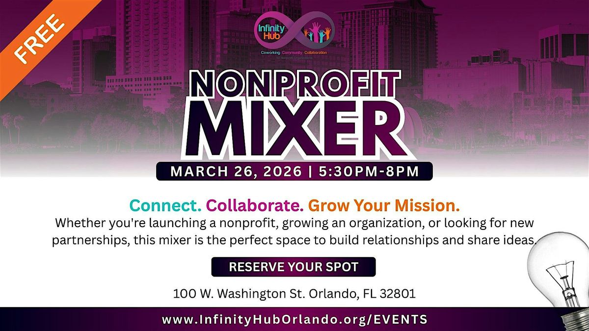 Join us at Infinity Hub for our Nonprofit Networking Mixer, an evening designed to bring together nonprofit leaders, founders, and community advocates across Central Florida.