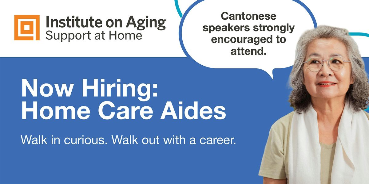 Stop by to learn about our home care and support services, meet the hiring team, and get all your questions answered — training, pay, qualifications, next steps. The Institute on Aging will cover the onboarding costs.