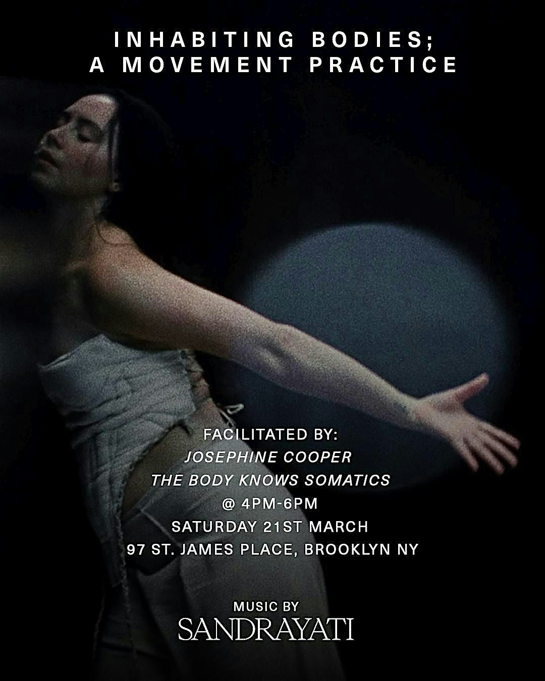 Inhabiting Bodies is an invitation to explore our bodies as habitats - as rhythm, as breath, as living landscapes. Guided by music from INHABIT (album by Sandrayati), this immersive movement experience traces the cycle of life through 4 phases: recall, release~, arise* and INHABIT, echoing the wisdom and the menstrual cycle as a metaphor for all creation.
