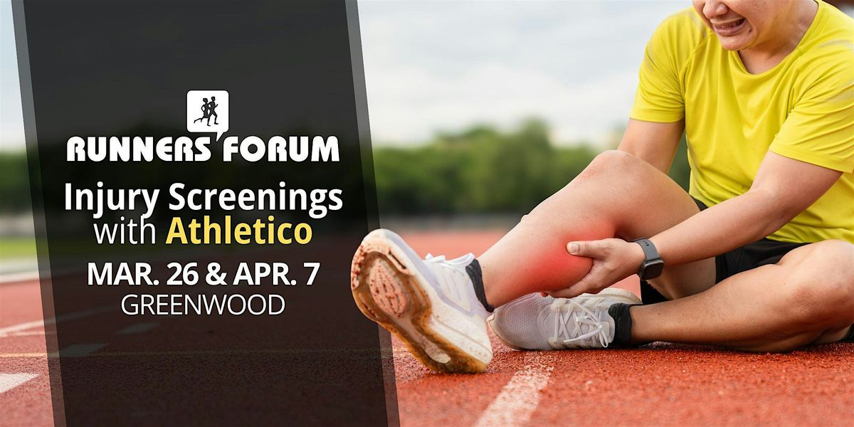 Join us for a FREE injury screening with licensed clinician from Athletico at the Runners Forum Greenwood location. This event is designed to help you stay active, move comfortably, and address minor issues before they become bigger setbacks.