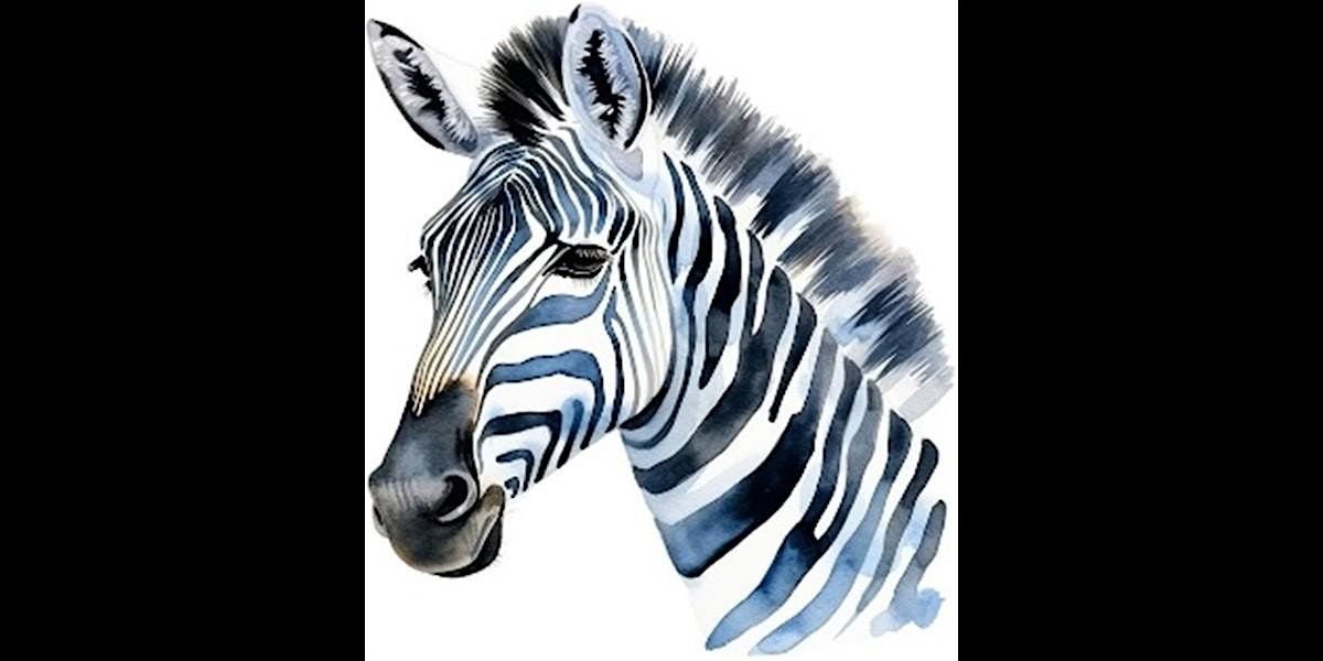 Celebrate Earth Week by drawing and painting one of the world’s most beautiful creatures: the zebra! In this class, we will concentrate on drawing a delicate contour line for the shape of the zebra based on a tracing or step drawing by hand, then use watercolor to create shadows, drama and the zebra’s famous “striped pajamas.” The final product is approximately 9x12”.