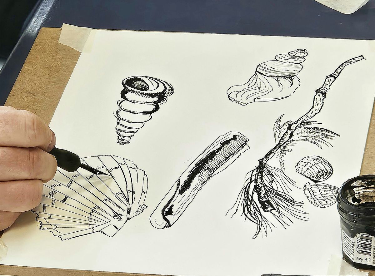 Come along and have fun getting to grips with the wonders of ink drawing. We will experiment with different tools for working with this exciting medium, including sticks, brushes, droppers and dip pens, and will create a collection of drawings of autumnal objects in the studio, such as plants, seeds, & autumn fruit, as well as working from reference photos of wildlife and city scenes. We will be working mostly with black indian ink, but I will also bring some coloured inks along to experiment with!