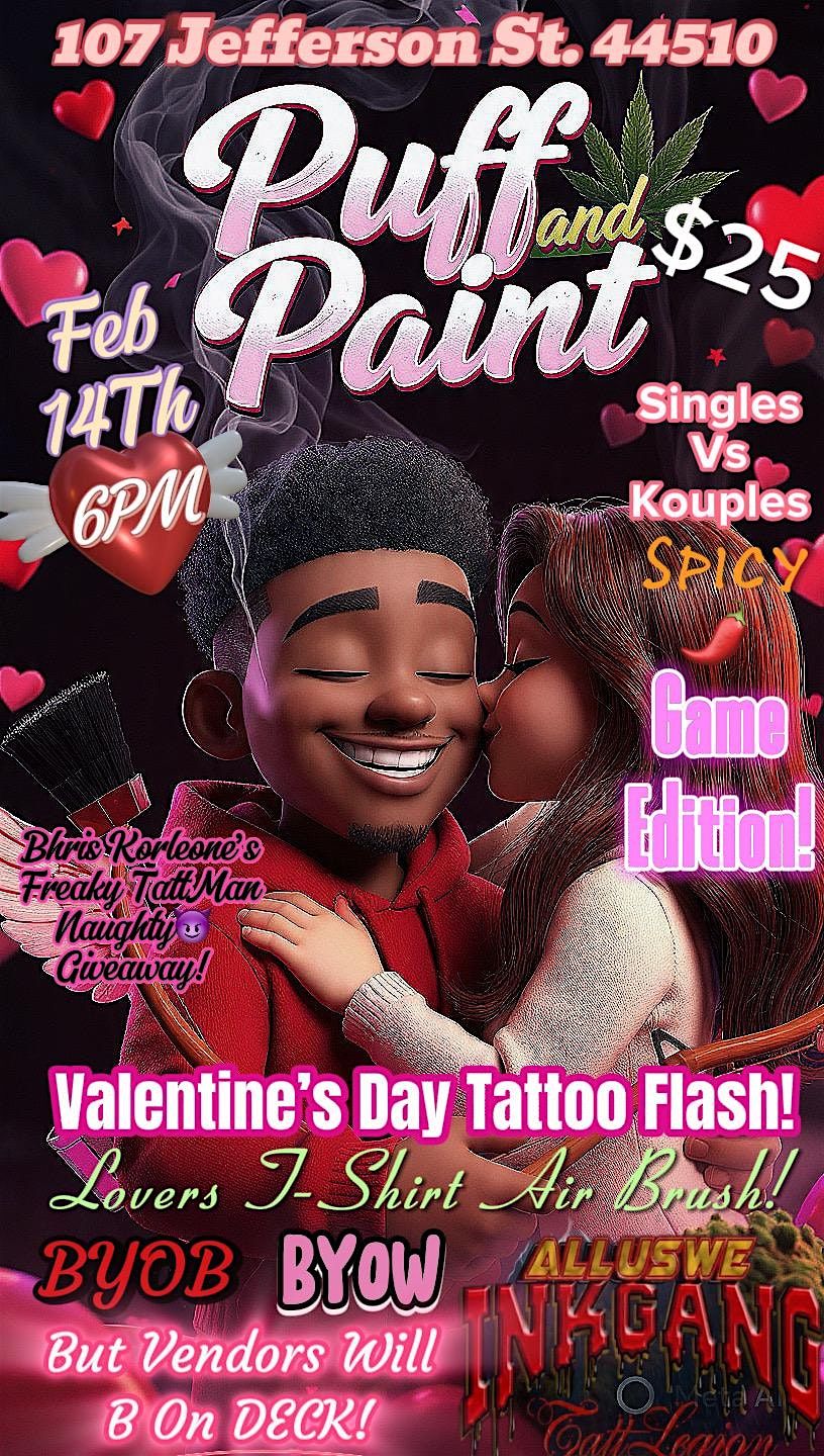 Get ready for a fun night out in person with the Ink Gang crew! This naughty Valentines Puff & Paint event is all about good vibes, creativity, and a little bit of cheeky fun. Unleash your inner artist while enjoying awesome company. Whether you’re painting, puffing, or just chilling, it’s the perfect way to celebrate Valentines with a twist. Don’t miss out on this one-of-a-kind experience!