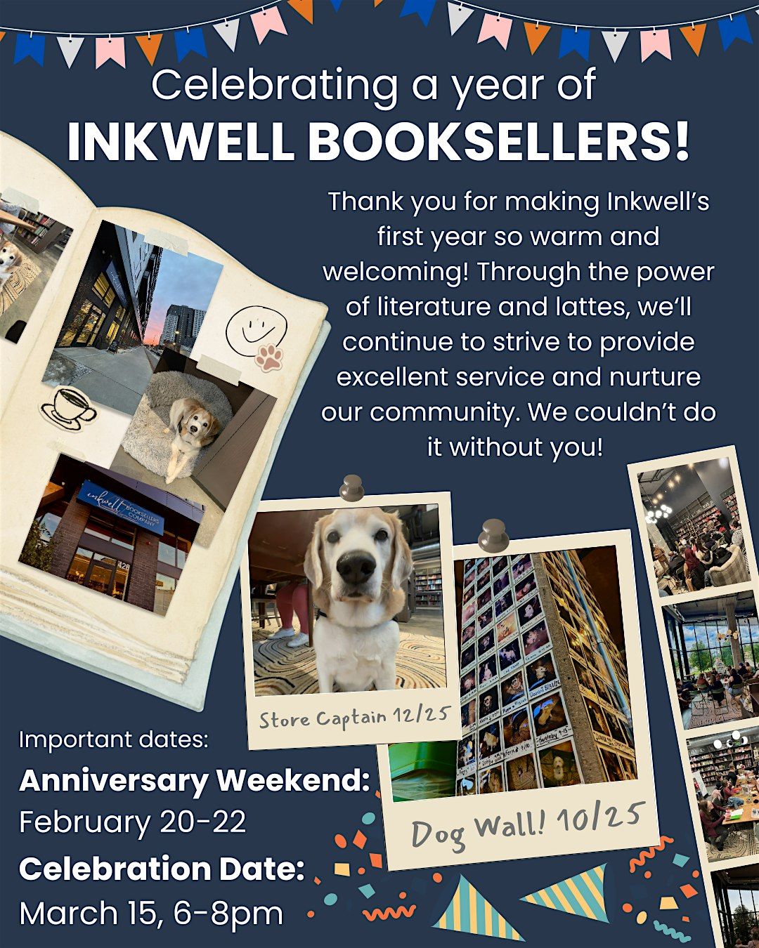 Join us at Inkwell Booksellers Company as we celebrate our one year anniversary! 🎉 Let's commemorate this special occasion together on March 15, 2026 at 6:00 PM (Central Time). This evening is our way of saying thank you to the community that’s made our first year so meaningful.