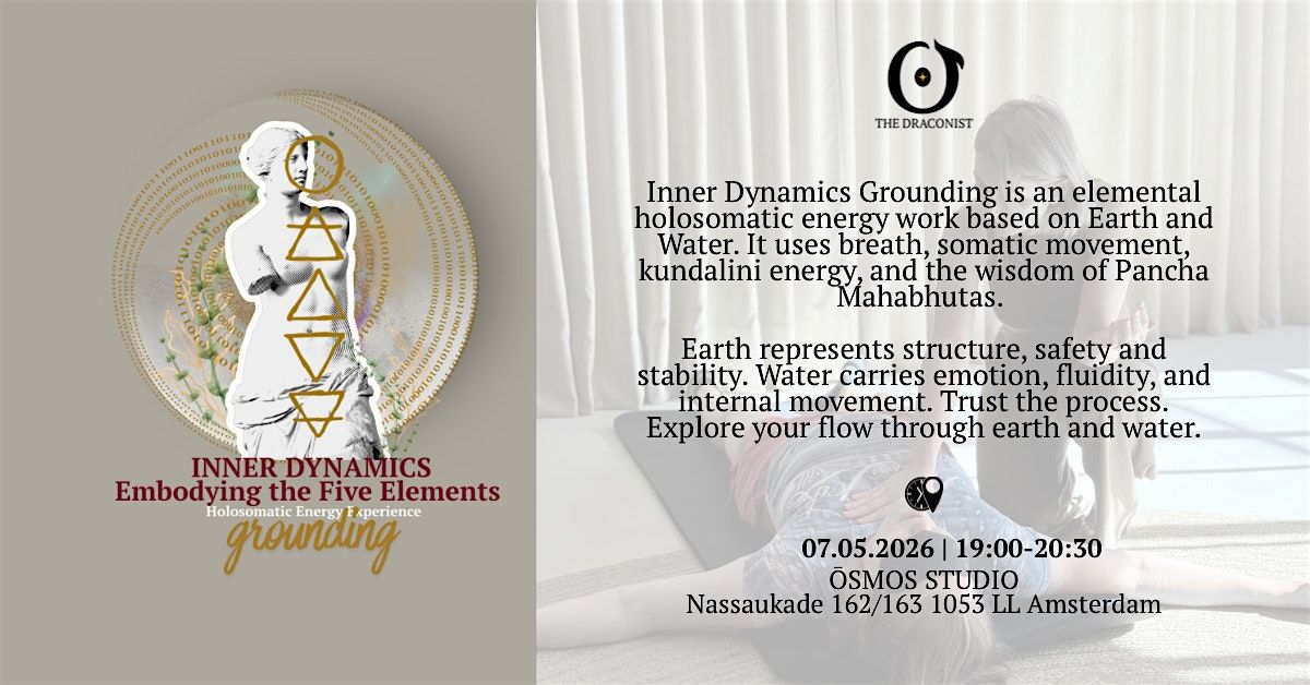 Join us in person for an exciting dive into the world of Inner Dynamics Grounding. Inner Dynamics is an elemental holosomatic energy work based on earth, water, fire, air and space. It uses breath, somatic movement, kundalini energy, and the wisdom of Pancha Mahabhutas. It connects body, emotions, awareness, and energy to notice holding patterns and unprocessed emotions, release them, and find inner balance through direct experience.