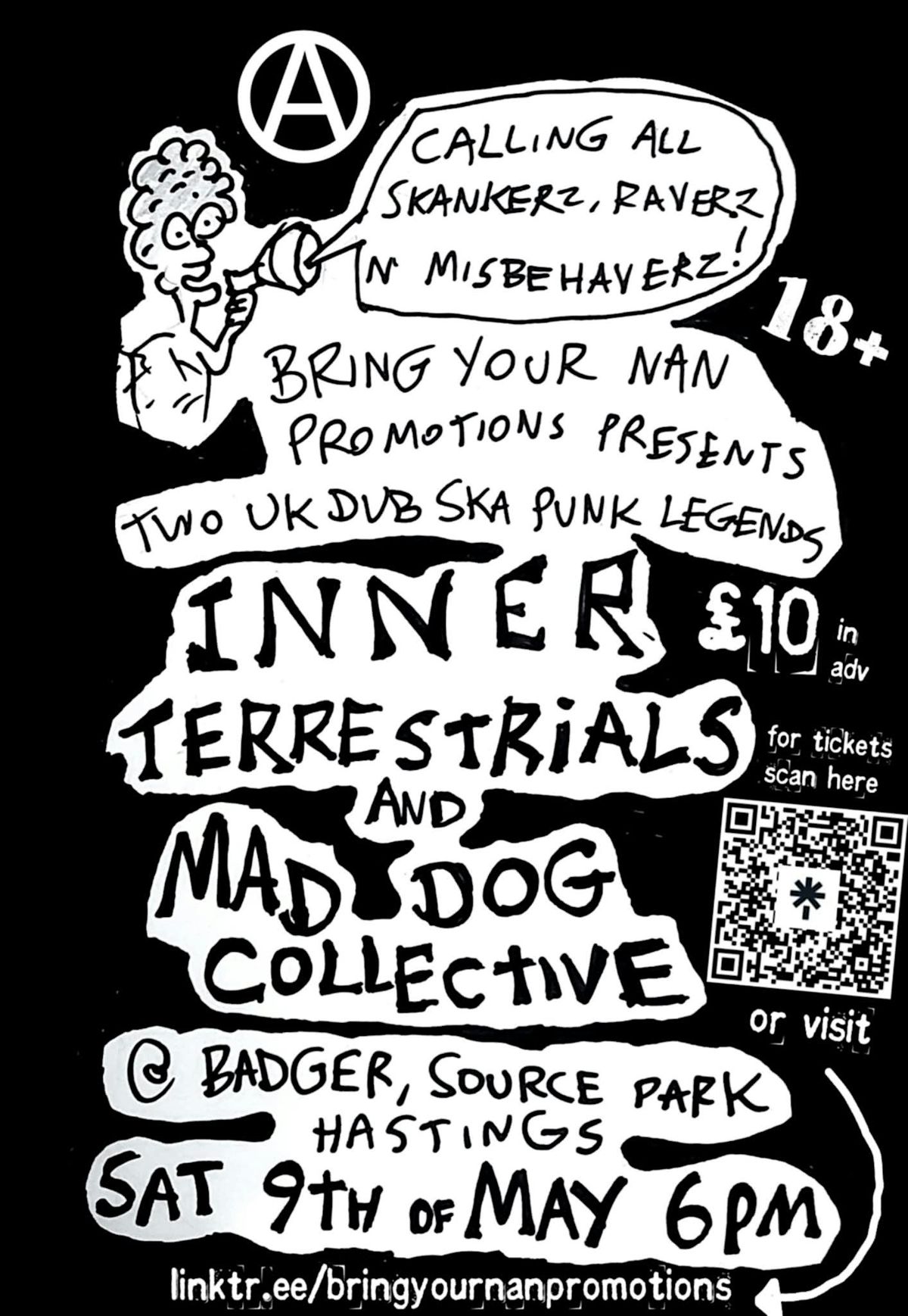 Inner Terrestrials are a long-running DIY punk band formed in South London in the mid-1990s, blending fast, politically charged punk with heavy reggae, dub and ska rhythms. Fronted by Jay Terrestrial alongside bassist Fran Webber and drummer Ben Swan, they emerged from the UK’s squat-punk and free-festival scene and built their reputation touring underground venues and festivals across Europe. Their music mixes driving punk energy with deep dub basslines and skanking ska sections, while their lyrics tackle social justice, anti-war politics and environmentalism. Fiercely independent, they’ve remained rooted in the DIY ethos for over three decades.