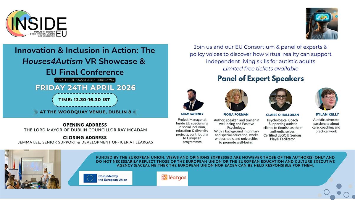 Join INSIDE EU in-person for the Houses4Autism VR Showcase & Final EU Conference! Opening address by The Lord Mayor of Dublin Cllr Ray McAdam, this event brings together policymakers, researchers and autistic individuals and experts to explore the future of inclusive solutions across Europe.