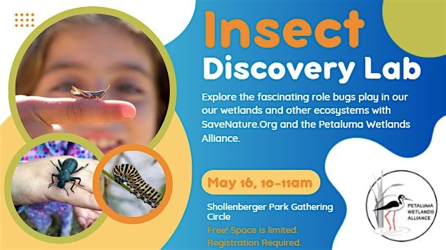Join educators from SaveNature.org for a free Insect Discovery Lab on Saturday, May 16, from 10–11 AM at the Shollenberger Park Gathering Circle.