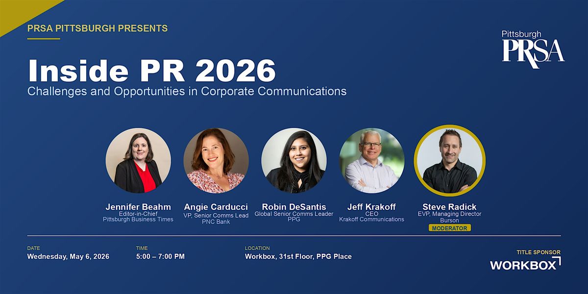 Join PRSA Pittsburgh for an unfiltered panel conversation with executives from across the financial, corporate, media, and global business sectors — digging into the real challenges and decisions shaping the communications function today.