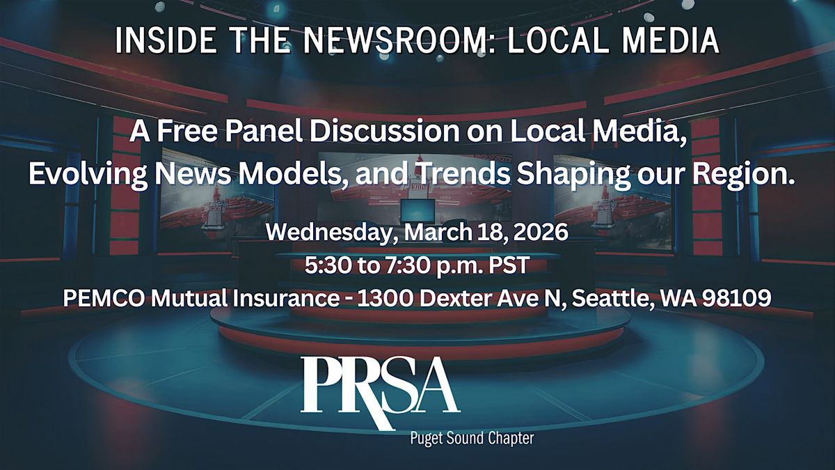 "Inside the Newsroom" is an ongoing series presented by the Public Relations Society of America (PRSA) Puget Sound chapter throughout 2026. Each event will feature a panel discussion with media voices across a variety of mediums all around a central theme or beat, such as local media. Stay tuned for more events in this series on other topics!