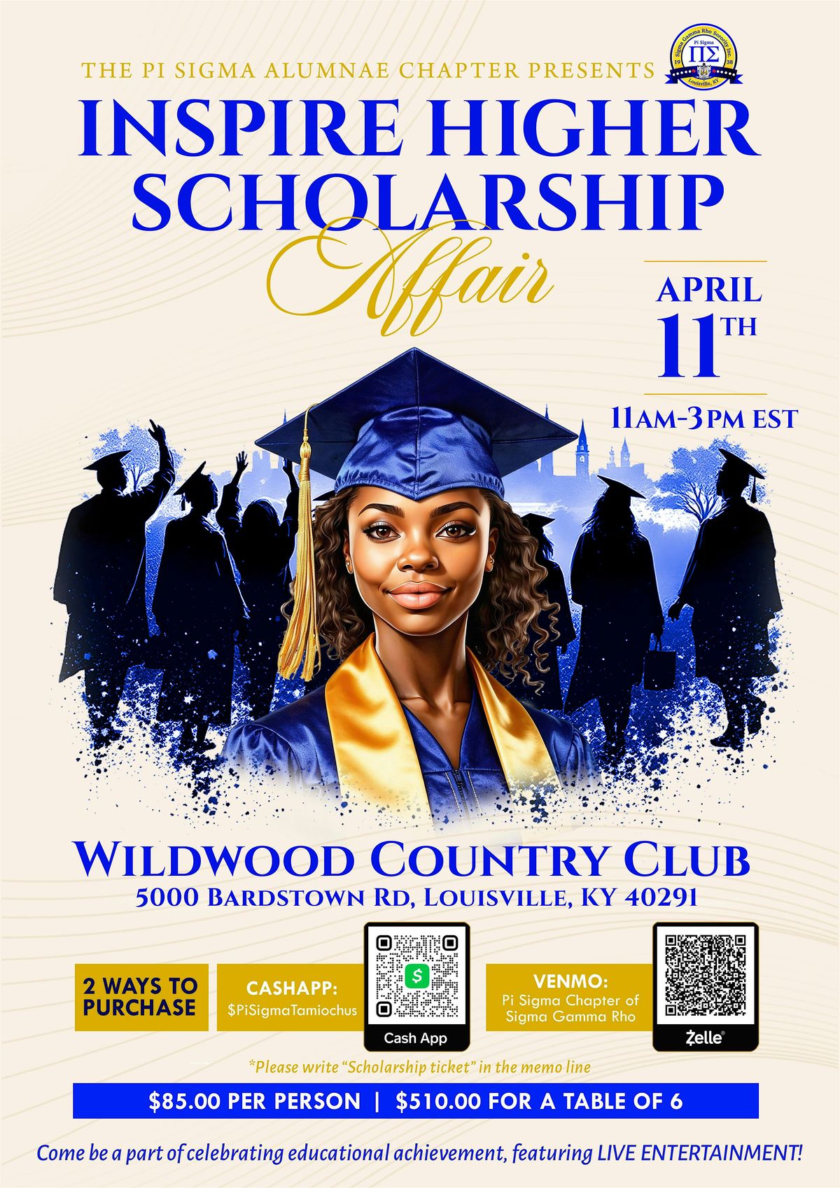 Join the Pi Sigma Alumnae Chapter for the Inspire Higher Scholarship Brunch, an afternoon dedicated to celebrating education, leadership, and the future of our youth. This special event supports scholarships for deserving students as they pursue higher education and opportunities for success.