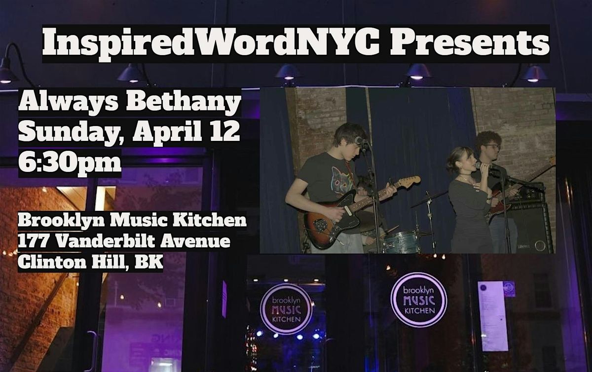 InspiredWordNYC Presents Always Bethany at Brooklyn Music Kitchen in the heart of Clinton Hill, BKAbout this Event