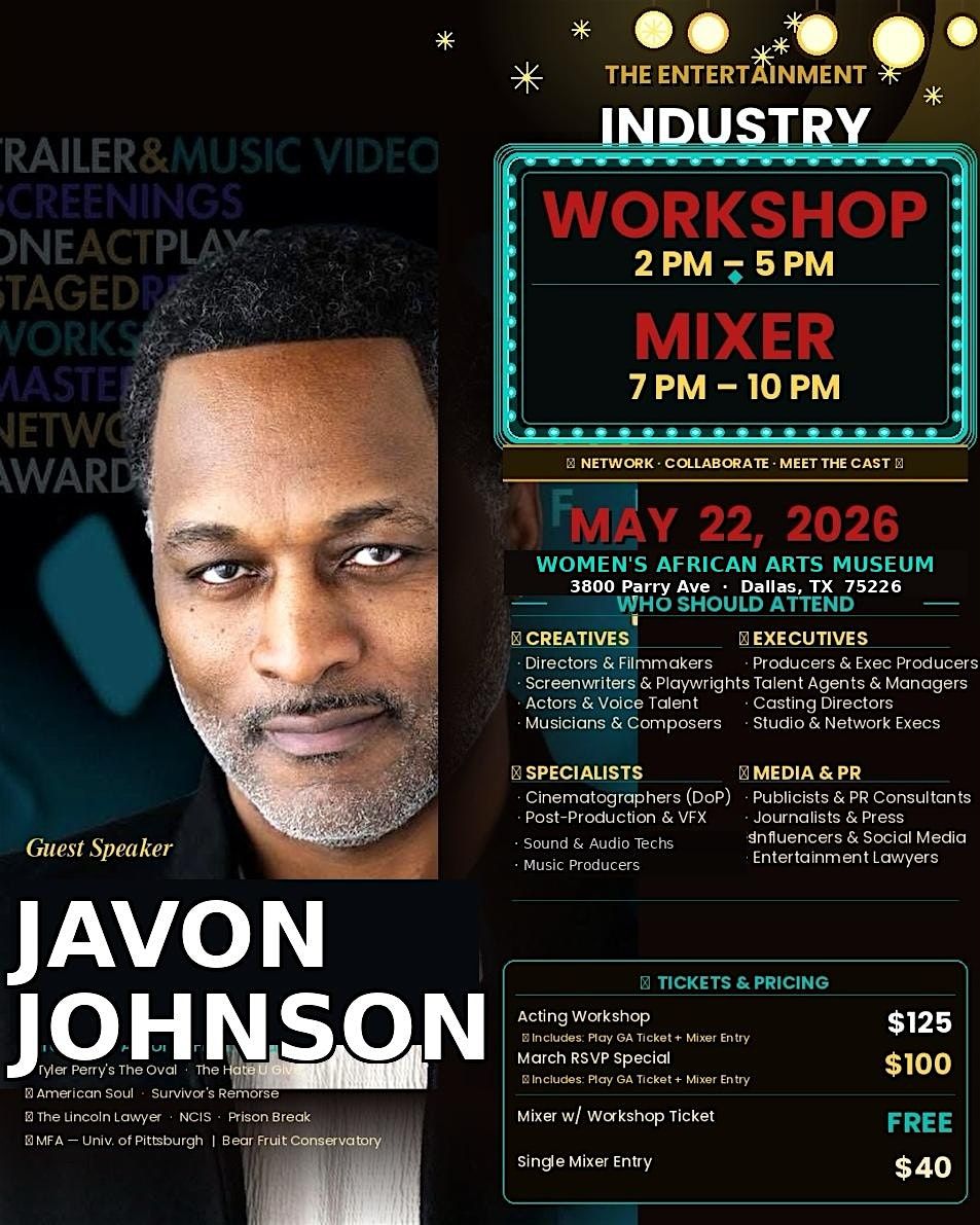 Our Inspiring Actors Workshop brings together aspiring and experienced performers for an intensive, supportive exploration of craft and character. During our transformative meeting participants will engage in voice, movement, improvisation, scene study, and script analysis led by Celebrity Actor, Javon Johnson from the Tyler Perry's show: The Oval.