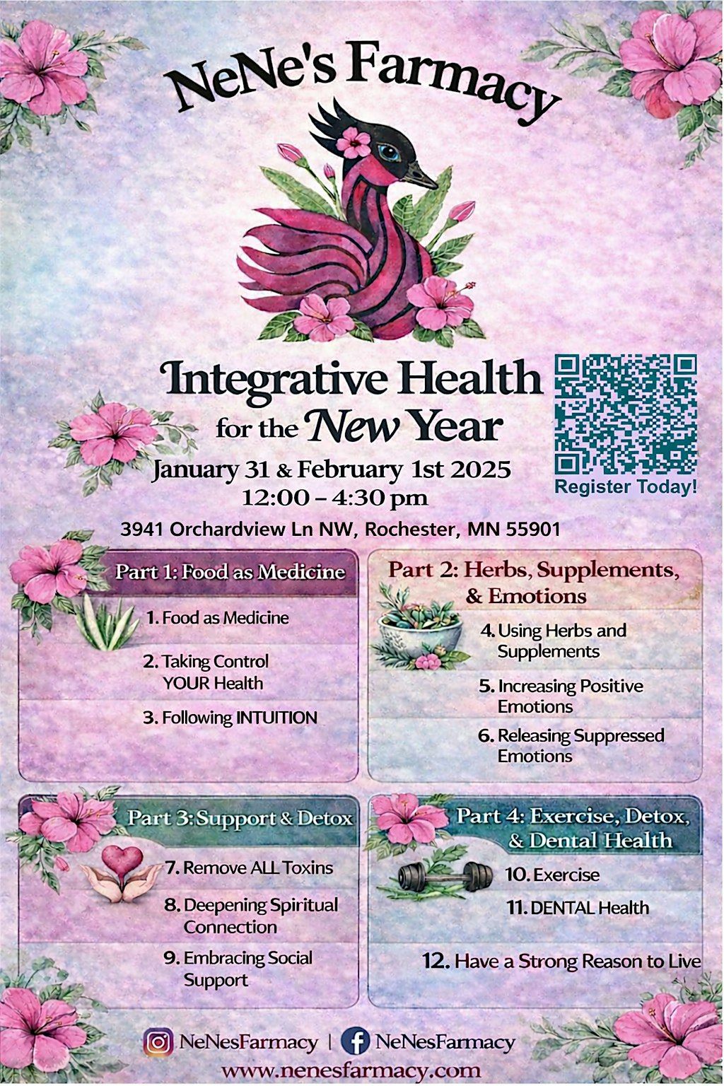 We’re pleased to invite you to Integrative Health for the New Year, a four-part brunch workshop series presented by NeNe’s Farmacy and led by Dr. Renee Hirte, PhD.