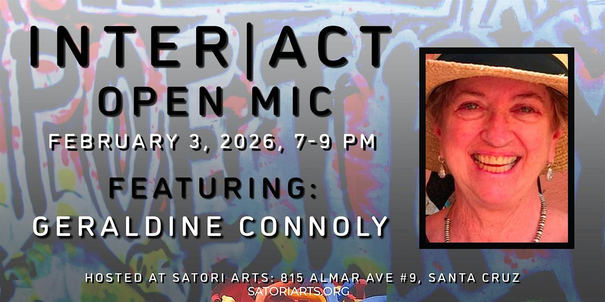 Are you ready to get your poetry on? Join us on February 3, 2026 at Satori Arts for Inter|Act, a FREE open mic night, from 7-9 pm, featuring Geraldine Connolly!