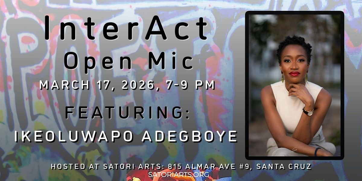 Are you ready to get your poetry on? Join us on March 17, 2026 at Satori Arts for InterAct, a FREE open mic night, from 7-9 pm, featuring IkeOluwapo Adegboye.