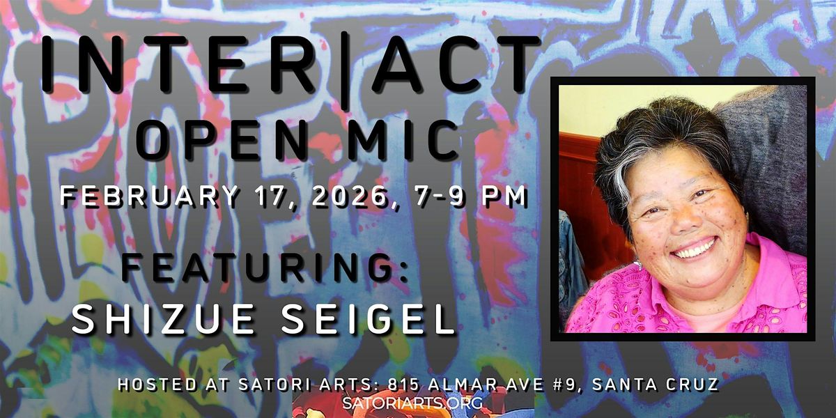 Are you ready to get your poetry on? Join us on February 17, 2026 at Satori Arts for Inter|Act, a FREE open mic night, from 7-9 pm, featuring Shizue Seigel!
