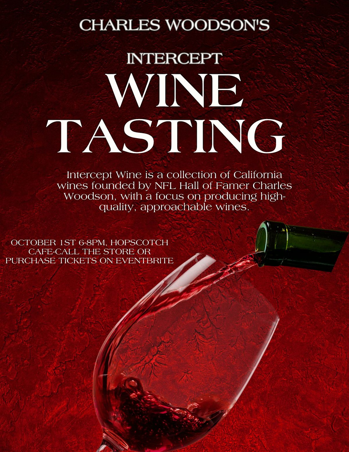 Intercept Wines are created by NFL Hall of Famer Charles Woodson, this tasting is the combination of the excitement of football and the extravagance of wine. We will sample all varieties, enjoy some snacks and have a complimentary pour of your favorite. It will be fun! Cheers!