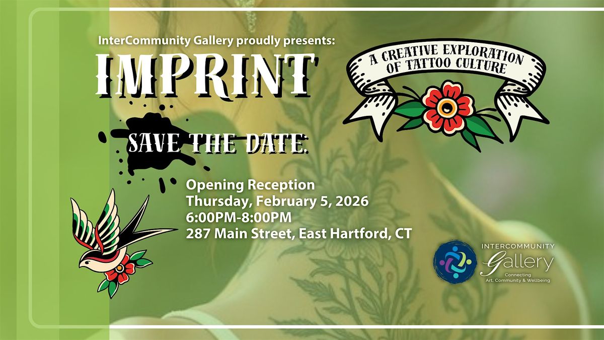 InterCommunity Gallery is pleased to announce the opening date for its first exhibition of the year! Join us on Thursday, February 5, 2026 from 6pm-8pm at 287 Main Street in East Hartford, CT for a free reception unveiling of our latest group juried show, "IMPRINT: A Creative Exploration of Tattoo Culture."