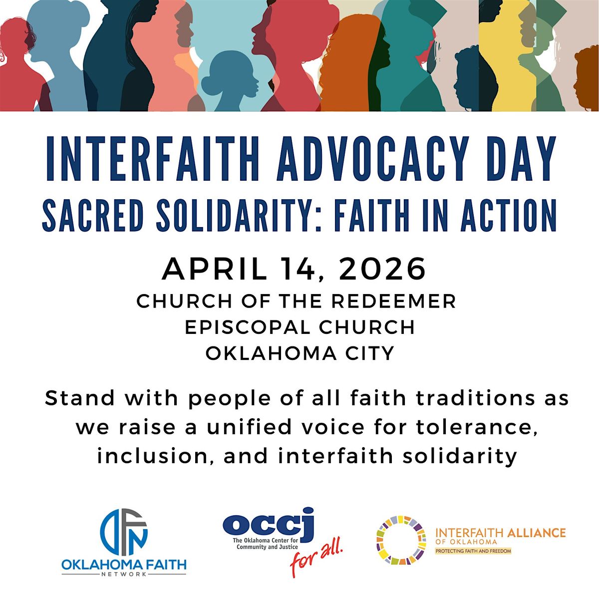 Interfaith Advocacy Day is all about uniting folks from different faiths to stand up for tolerance, justice, and inclusion of diverse voices. This show of solidarity makes visible the beautiful range of perspectives, experiences, traditions, and beliefs across the state. Don’t miss out on this opportunity to meet new people and advocate for a more just Oklahoma.