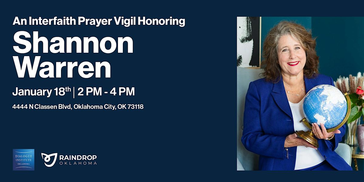 Join us in our Interfaith Prayer Vigil Honoring Shannon Warren! Join us at the Rain Drop Turkish House on January 18, 2026 at 2:00 PM (Central Time) as we come together in solidarity and remembrance.