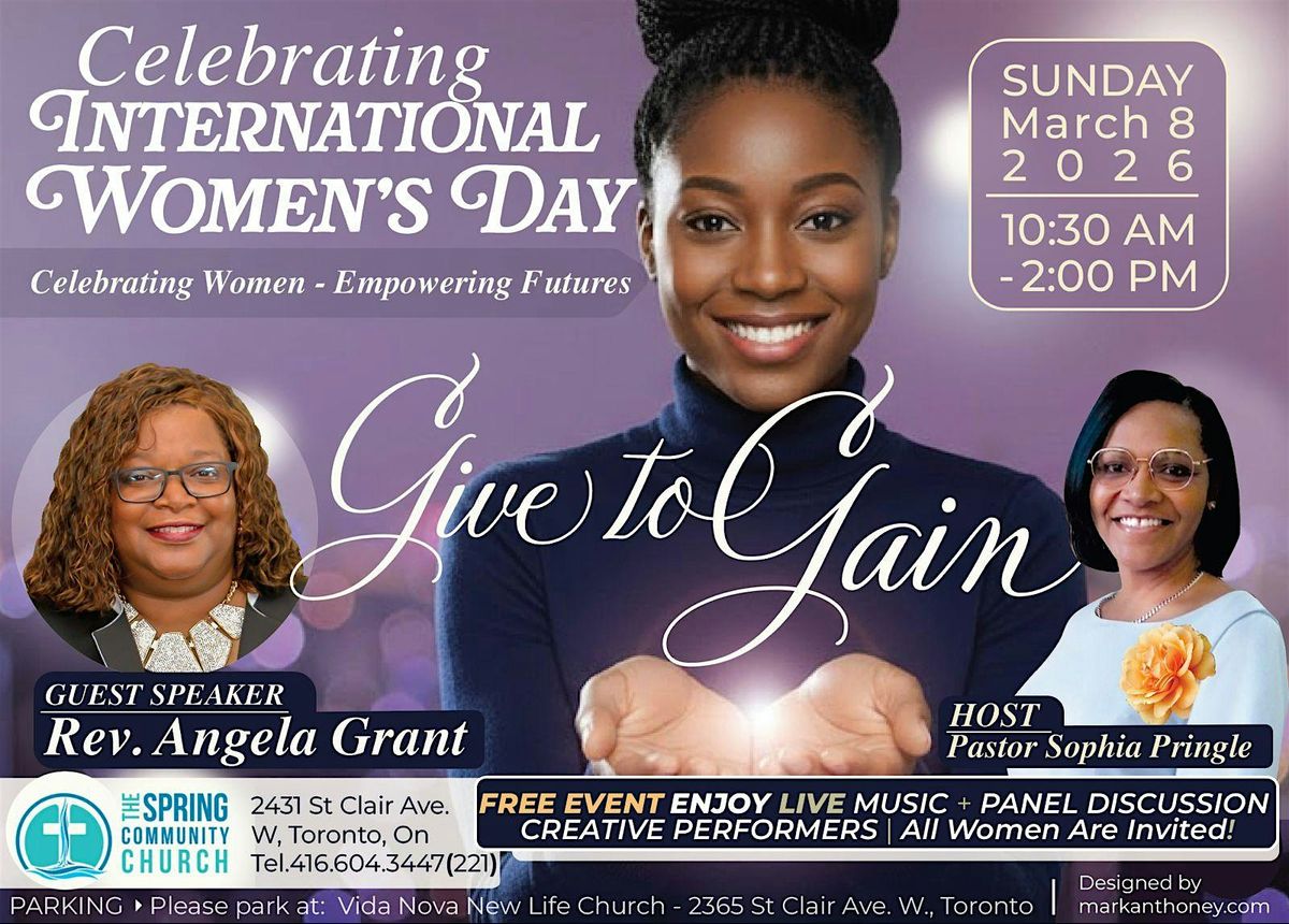 You are invited to a powerful and uplifting event celebrating International Women's Day on Sunday, March 8th @ 10:30 am. The theme for this year is "Give to Gain" – together, let’s champion gender equality through generous giving!