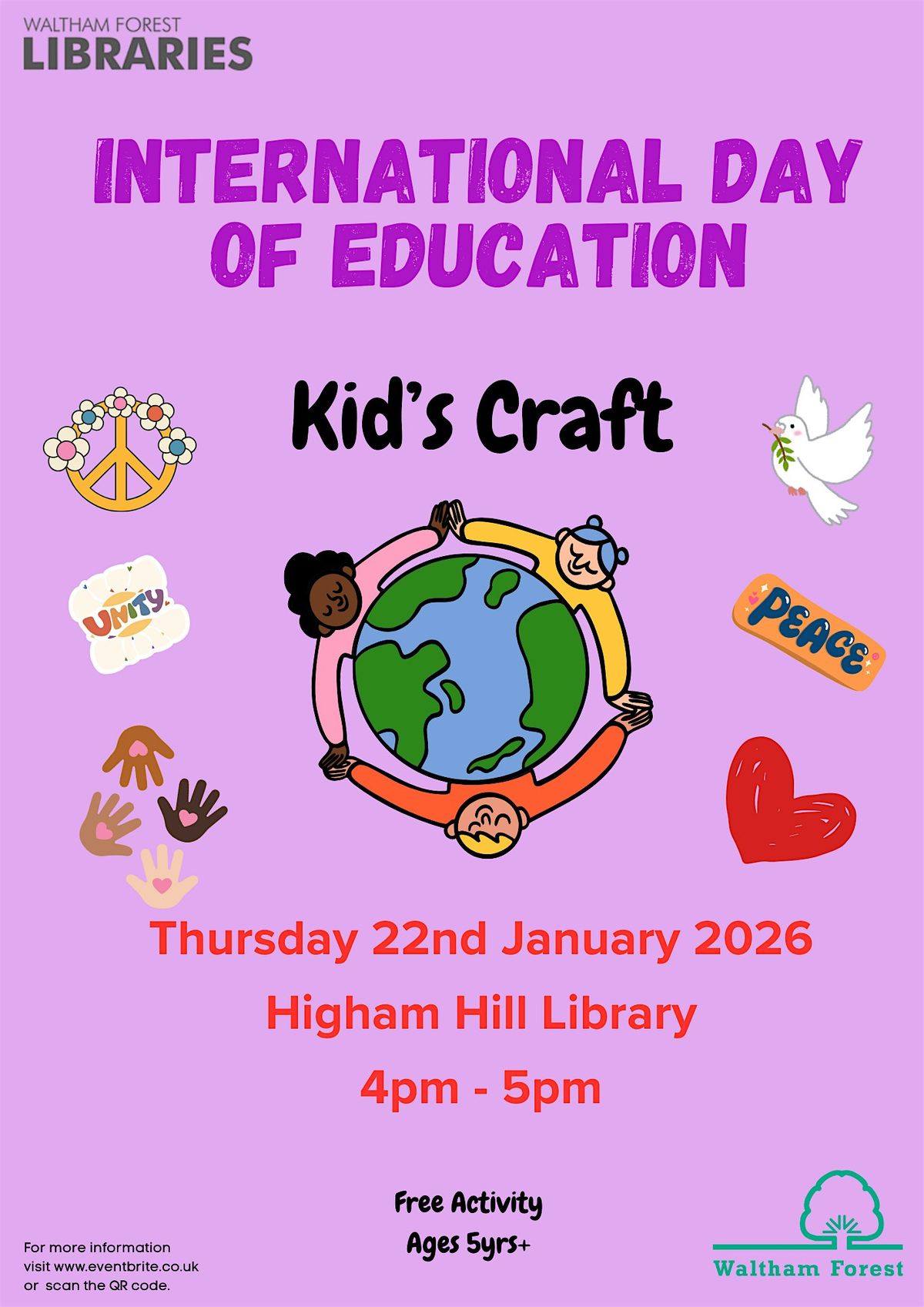 Come along to join us at Higham Hill library and get busy making your own super cool craft that symbolises this year's theme: Learning for Lasting Peace.