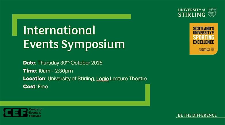 We are delighted to welcome you to attend the inaugural University of Stirling International Events Symposium on Thursday 30th October 2025. Our International Events Symposium will provide an exciting opportunity to learn from prestigious event industry professionals, who will deliver an informative and engaging mini lecture on the role they perform in the industry.