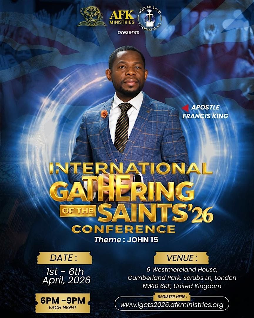 The International Gathering of the Saints is an annual multi-day event sponsored by Beulah Land International that brings together worshippers and leaders from across the UK and around the world. It’s a spiritually focused conference centred on worship, prayer, fellowship, teaching, and encouragement in faith.