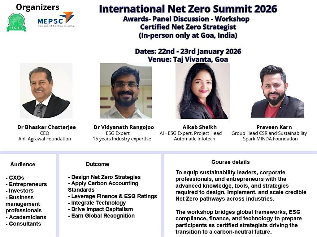 International Net Zero Summit 2026Awards- Panel Discussion - Workshop