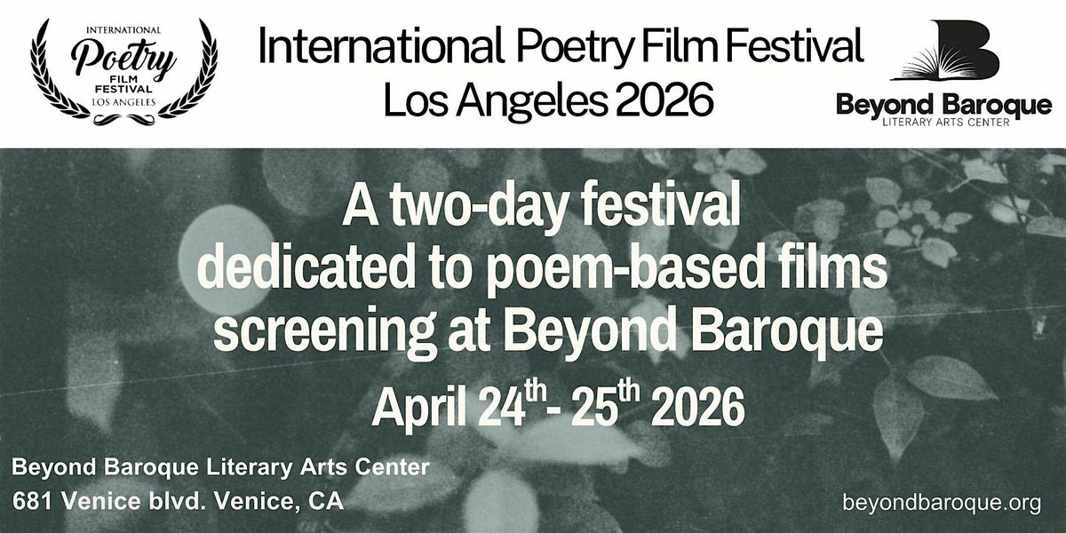 The fifth edition of the International Poetry Film Festival, Los Angeles, features screenings of 64 poem-based films from around the world, including selections from Argentina, Australia, Belgium, Brazil, Canada, Egypt, Germany, Mexico, the United Kingdom, among other countries. Selected by festival director Lynn Holley and Beyond Baroque, the films will be screened in The Wanda Coleman Theater.