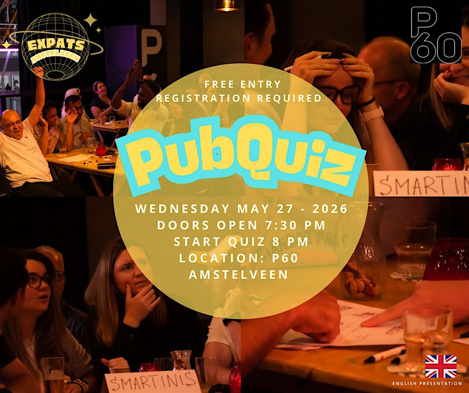 Join us for a fun and friendly International Pub Quiz, organized by ExpatsAmstelveen!