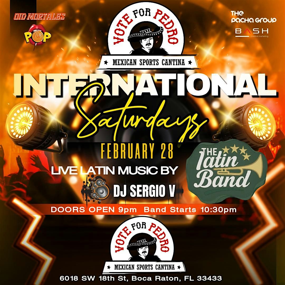 INTERNATIONAL SATURDAYS Live Music by THE LATIN BAND @ VOTE FOR PEDRO Boca!