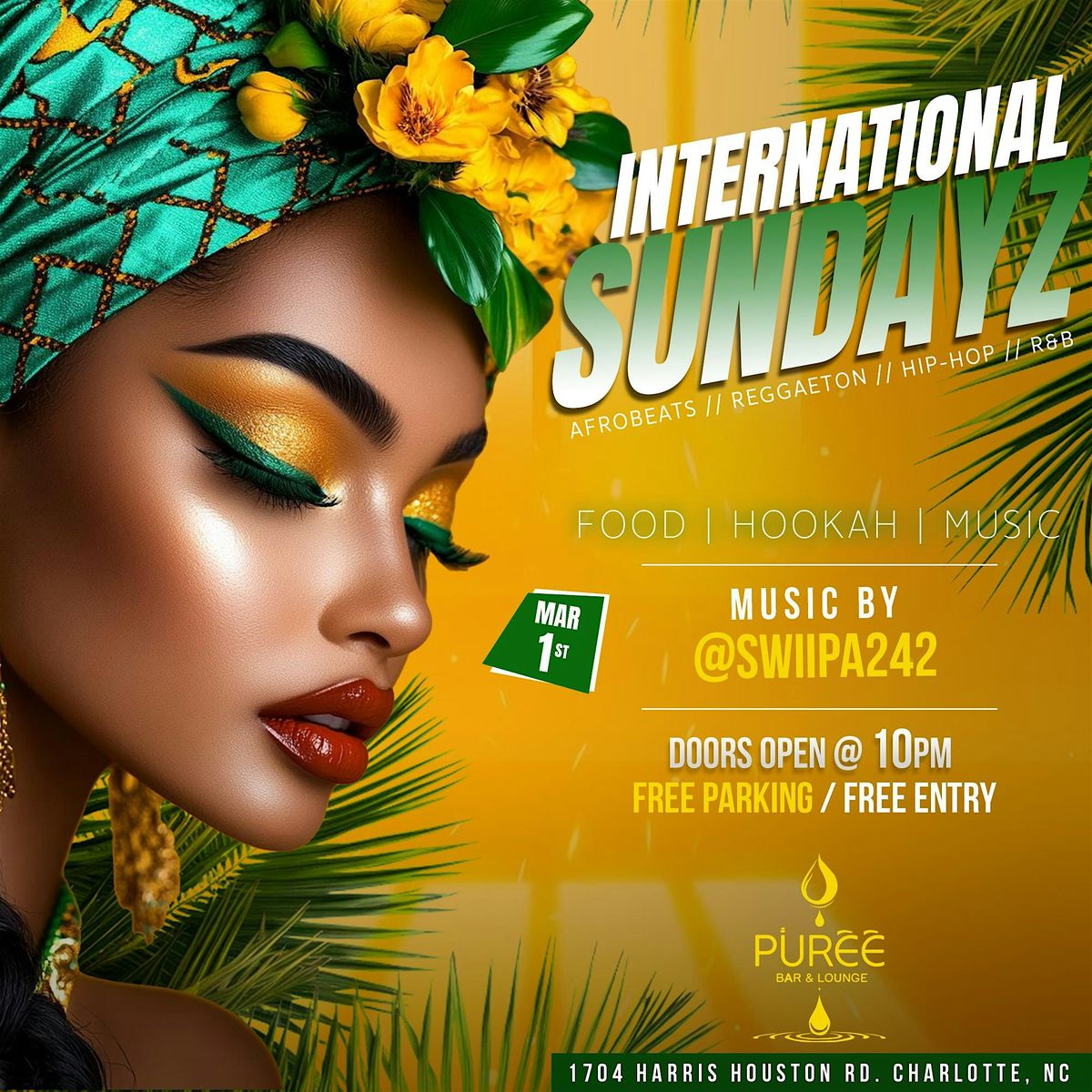 International Sundays at Purée CLT is where the whole globe links up under one roof. From Afrobeats that make your waistline bilingual to reggaeton that turns the floor into a dance battlefield, plus hip hop anthems that hit like home court classics… we spinning it all.
