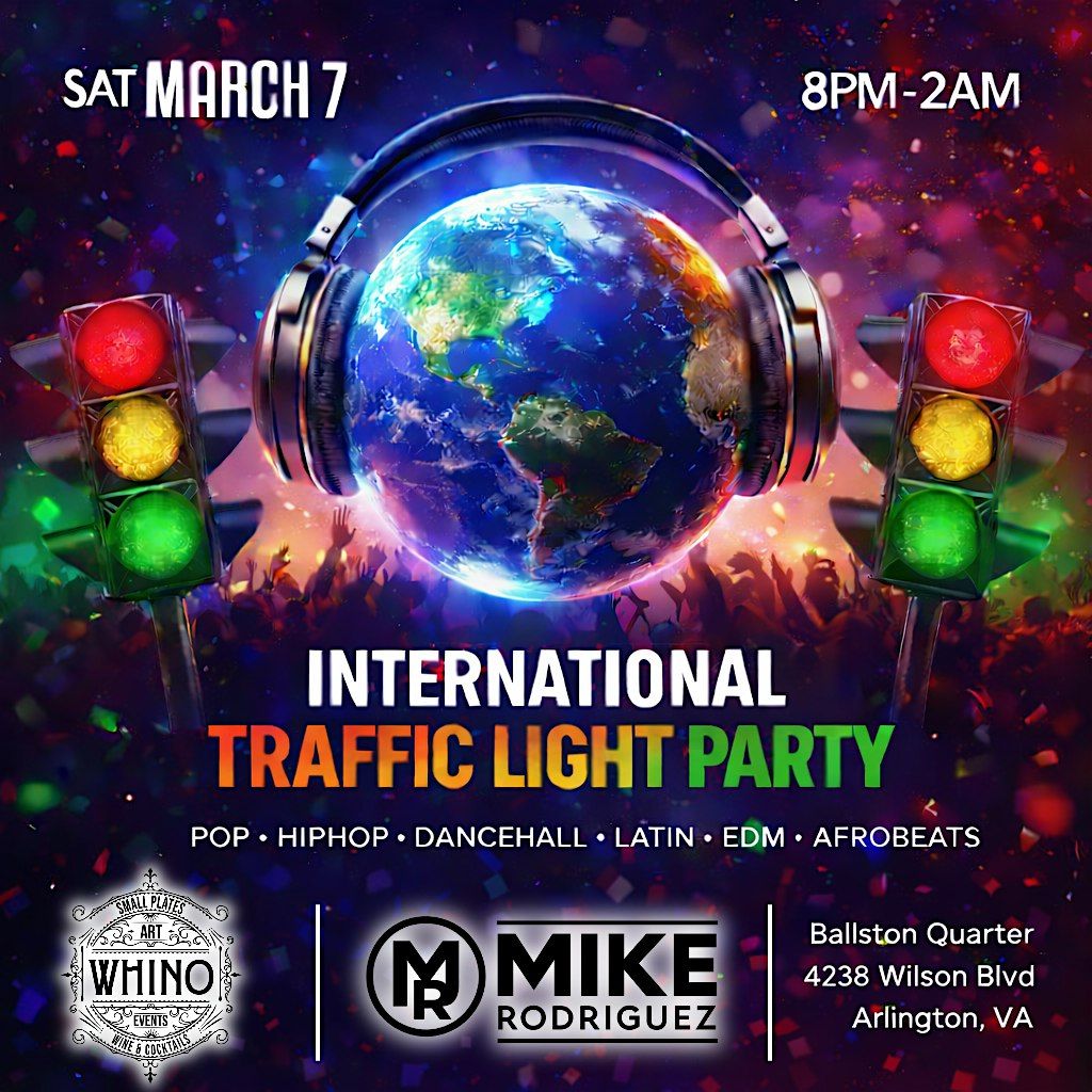 β° 8:00 PM β 2:00 AM Get ready for one of the most interactive and high-energy parties in the DMV! The International Traffic Light Party blends music, culture, and social vibes into one unforgettable night of dancing, mingling, and connection. Whether youβre single, taken, or somewhere in between β this party lets everyone know the vibe before the first song drops.