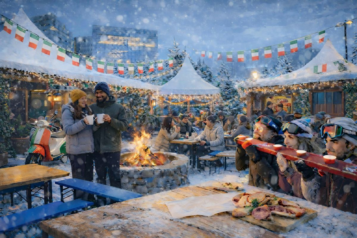 Italian Après-Ski Vibes • Cozy Firepits • Hot Drinks • Live Sports