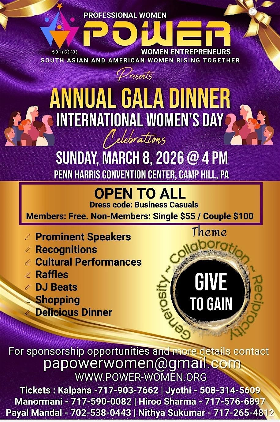 Join us for the POWER Annual Gala Dinner, an amazing in-person event filled with inspiration, connection, and celebration. It's the perfect chance to honor incredible women, enjoy great company, cultural performances delicious dinner, and make the night unforgettable. Don't miss out on this fantastic gathering where empowerment meets fun!