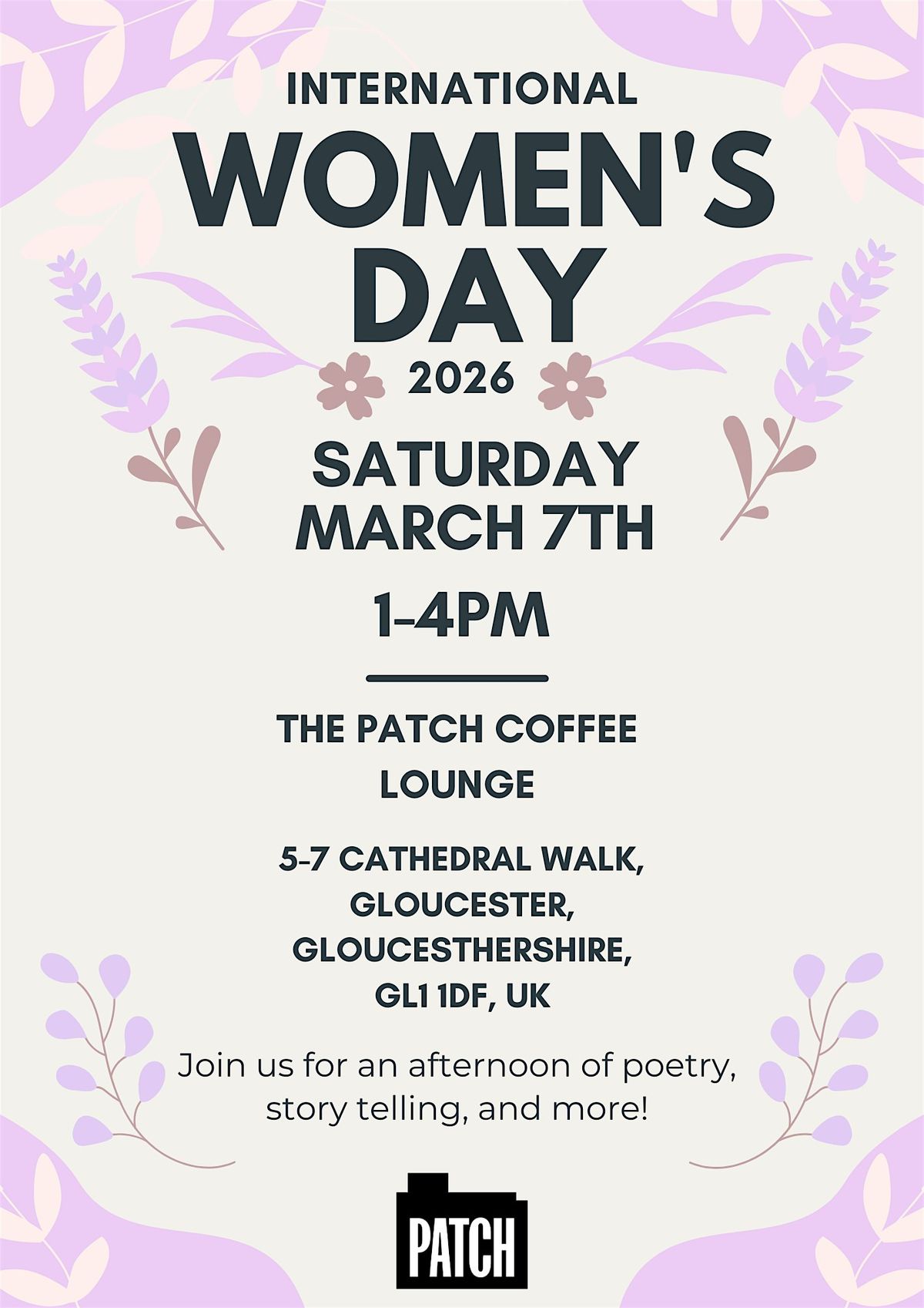 A celebration of International Women's Day in the fabulous The Patch Coffee Lounge at The Forum. This shiny new venue is ground floor and accessible with amazing coffee. Come and see a rich mix a film, music, storytelling and poetry.