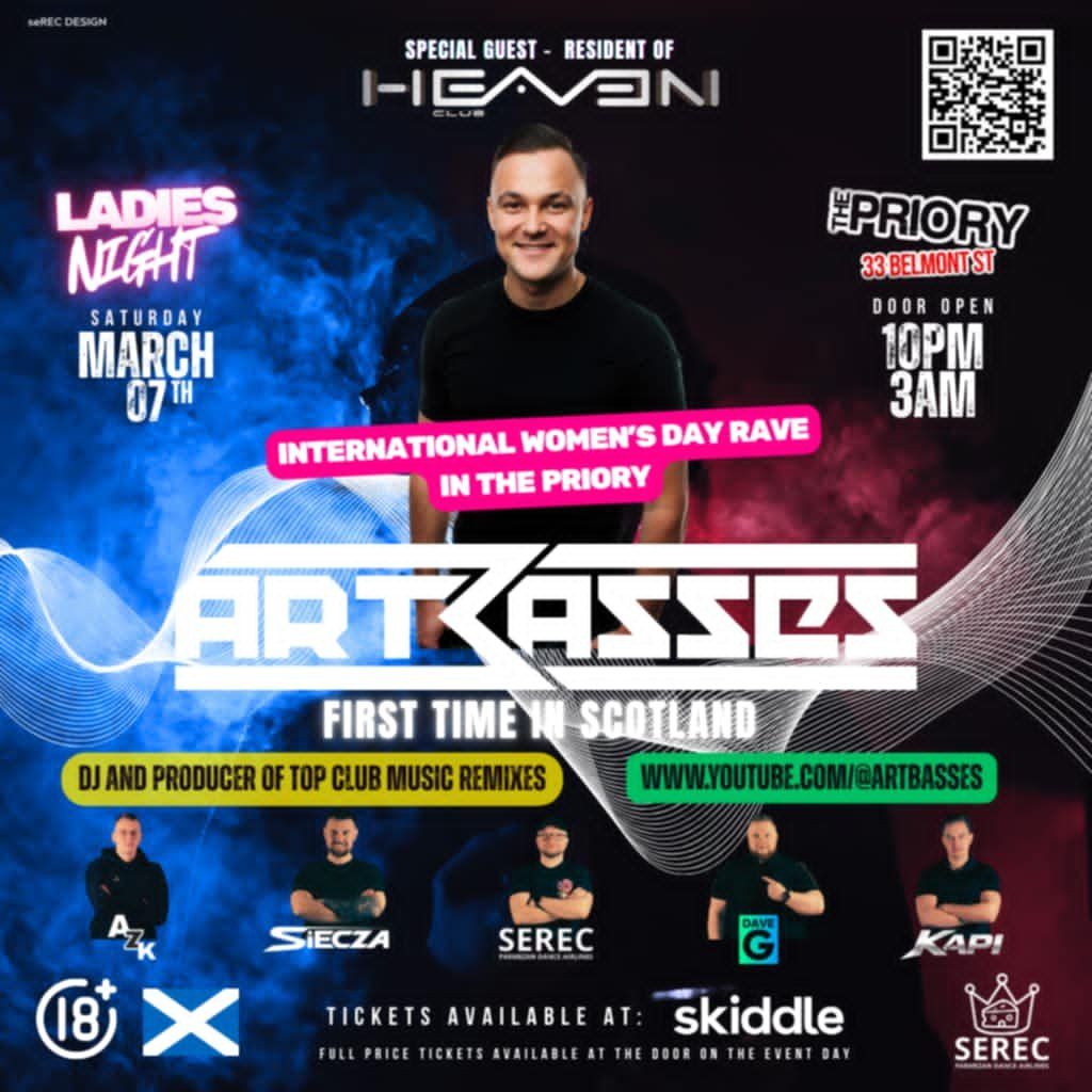 Get ready for the biggest International Women's Day Club Party in Scotland with a special guest coming all the way from Poland - Artbasses!Music Genres : Club Classics, EDM, Electro House, House, Tech House
