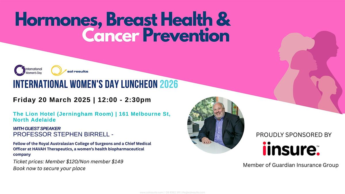 Join us on the 20th of March for an inspiring International Women’s Day lunch featuring Professor Steven Birrell, one of Australia’s leading surgical oncologists and a global authority on breast cancer prevention and women’s hormonal health.