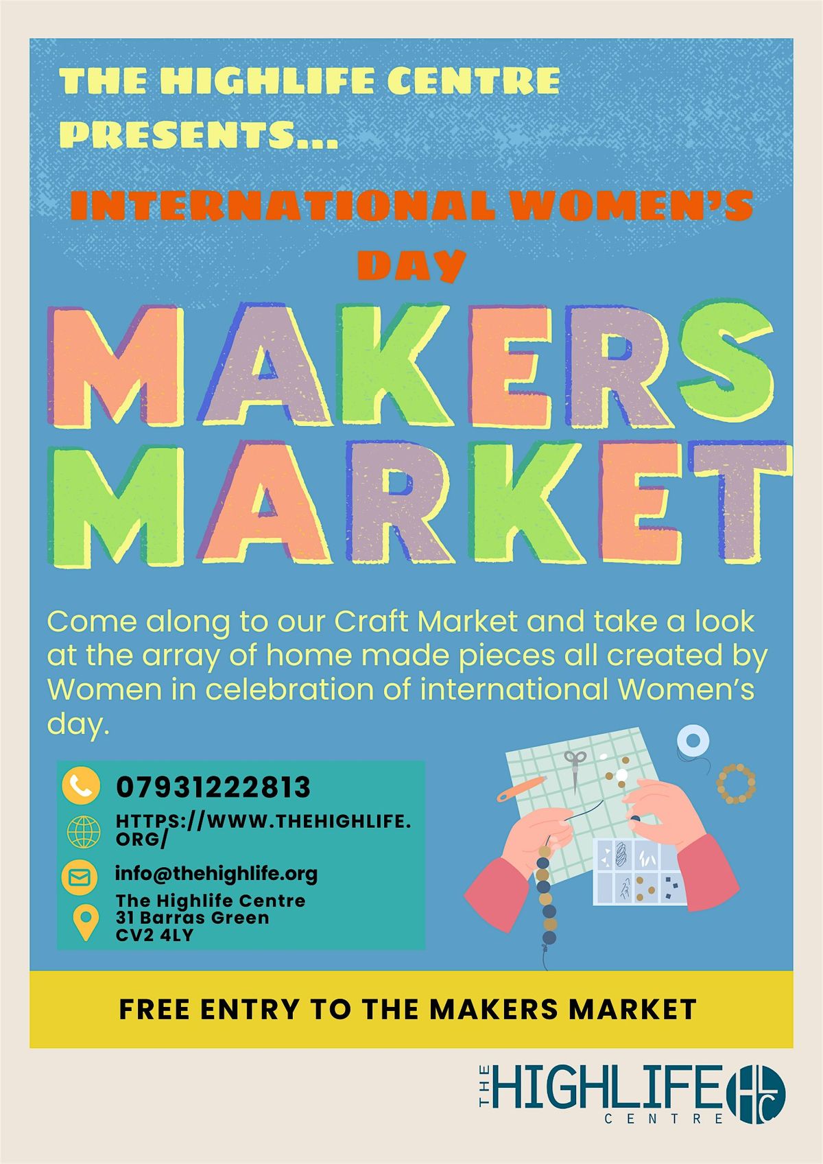 Join us in person to celebrate International Women's Day with a vibrant Makers Market at The Highlife Centre! Discover unique handcrafted goodies, support talented women creators, and enjoy a day full of creativity and community vibes. Don’t miss out on this awesome chance to connect and shop local!