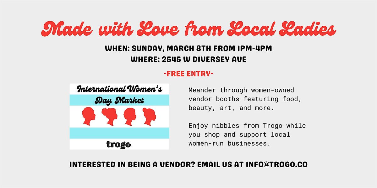 Join us on Sunday, March 8th from 1:00–4:00 PM at 2545 W Diversey Ave for an afternoon dedicated to celebrating and supporting women-owned businesses in our community.