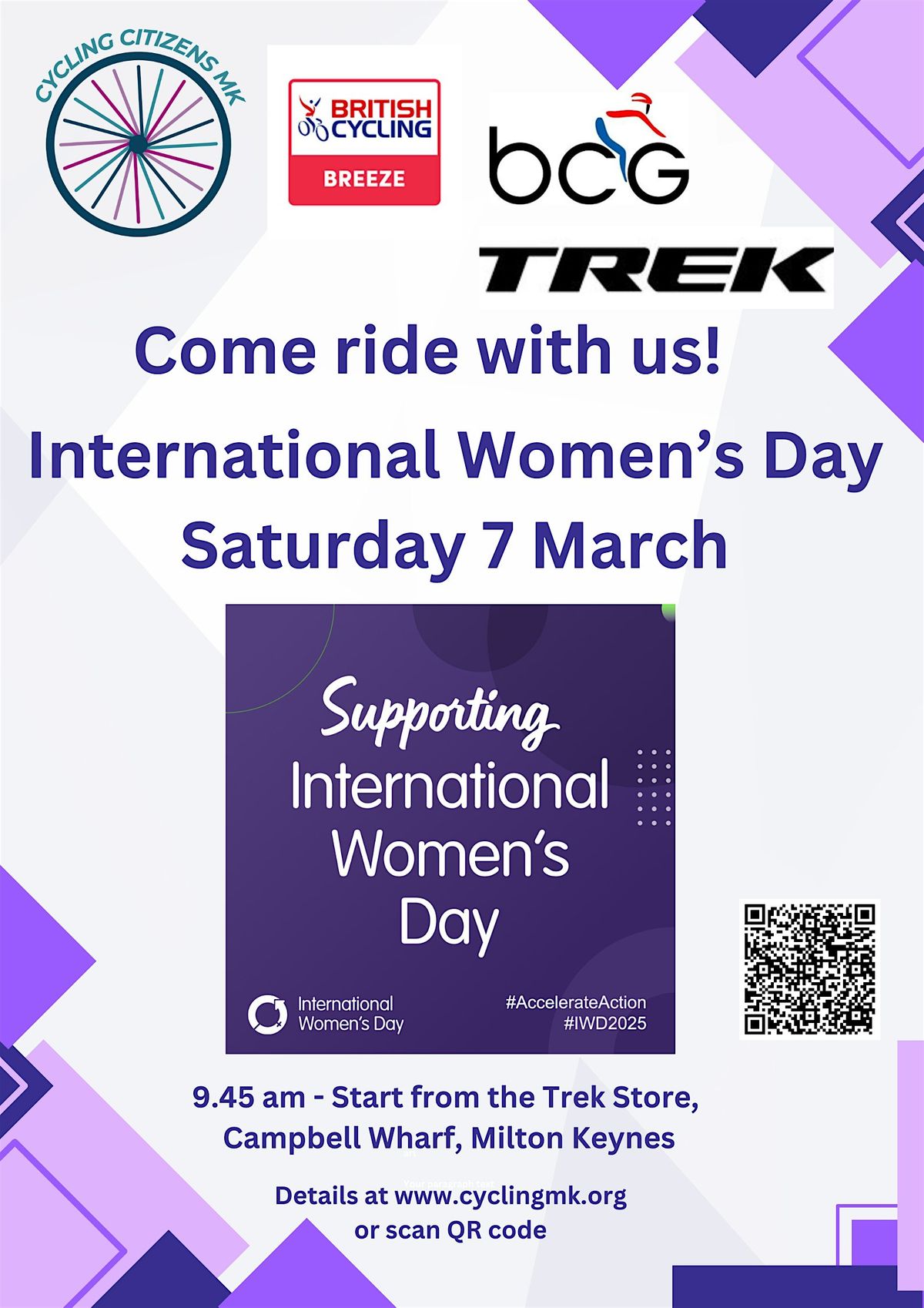 To celebrate women's cycling we are inviting women from around Milton Keynes to join us on an International Women's Day ride.