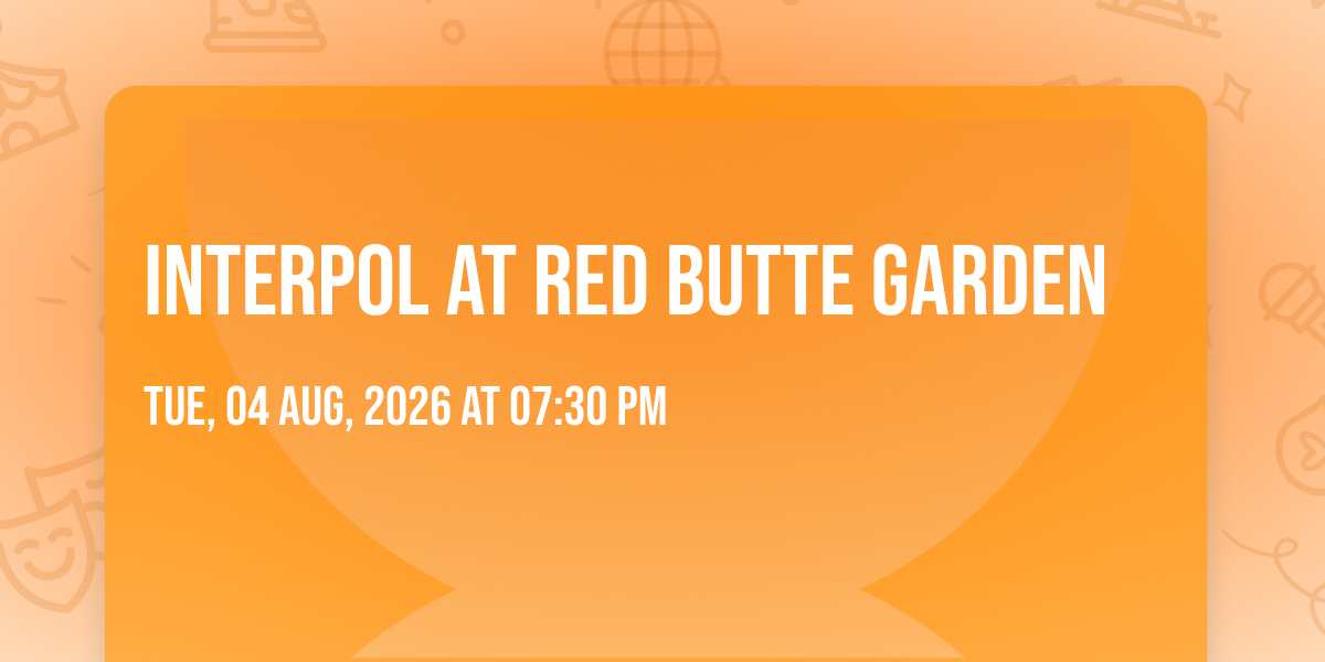 🎉 Welcome to Interpol at Red Butte Garden, where the impossible becomes possible and dreams take flight! 🏛️ Join us at Red Butte Garden in the heart of Salt Lake City, UT for an event that will redefine your expectations. 📅 On August 4th, 2026 at 07:30 PM, witness the transformation of space and time into something truly magical. ✨ It's a curated experience combining the best of innovation, entertainment, and community spirit, creating moments that will be remembered for years to come. Whether you're a first-time visitor or a seasoned enthusiast, prepare to be amazed. 🎊 Book now to ensure your place in this unforgettable experience!